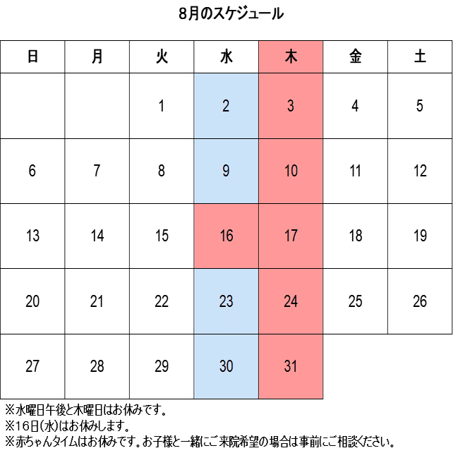 みなさま水分をこまめに摂ってクーラーをつけてゆっくり涼んでくださいね。8月もまだ猛暑日は続くそうですが、疲れた体を休ませにいらしてください。