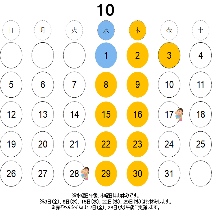 ③赤ちゃんタイムは17日(金)、28日(火)に実施します。